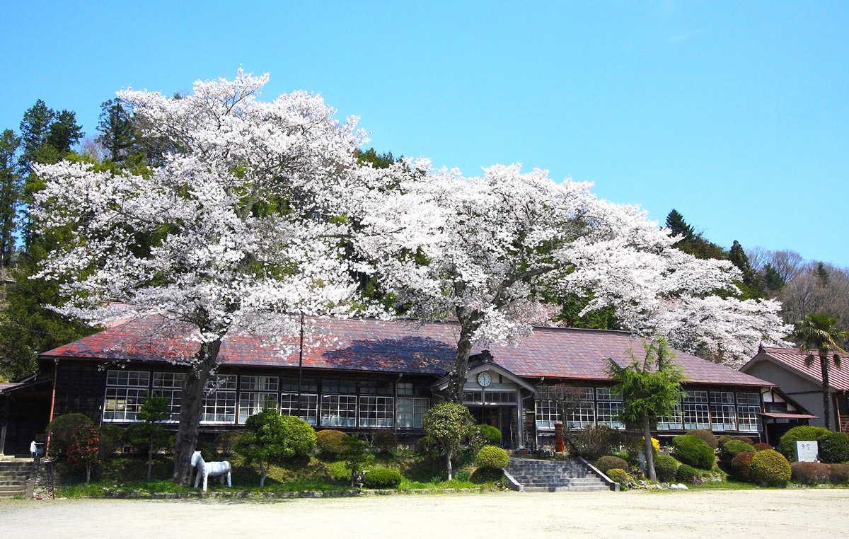 商店街を離れ、JR常陸大子駅から車で5分ほどの距離にある旧上岡小学校へ。ここはなんと、明治44年(1911)に建てられた木造校舎がそのまま残されている貴重なスポット。現存する校舎の中では県内一歴史の古い建物だそう。