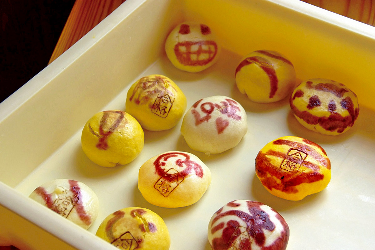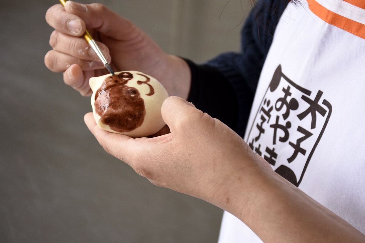 商品を購入するのもいいけど、自分だけのオリジナルのおやきを作ってみたい人には製作体験がおすすめ。こちらの体験メニューでは、具を包んで好きな形に整え、小豆の色素液でおやきに絵を描くことができるんです。