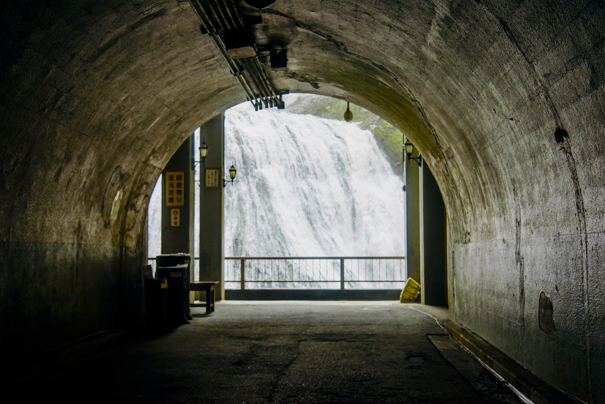 入口の料金所から観瀑トンネルを進むこと約2分。目の前に水の流れが見えてきます。ここが一番近くで滝を見られる第1観瀑台。