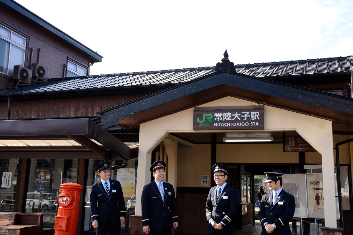 常陸大子駅長の堀野さん(写真右から2番目)はとてもうれしそうにコメントしてくださいました。