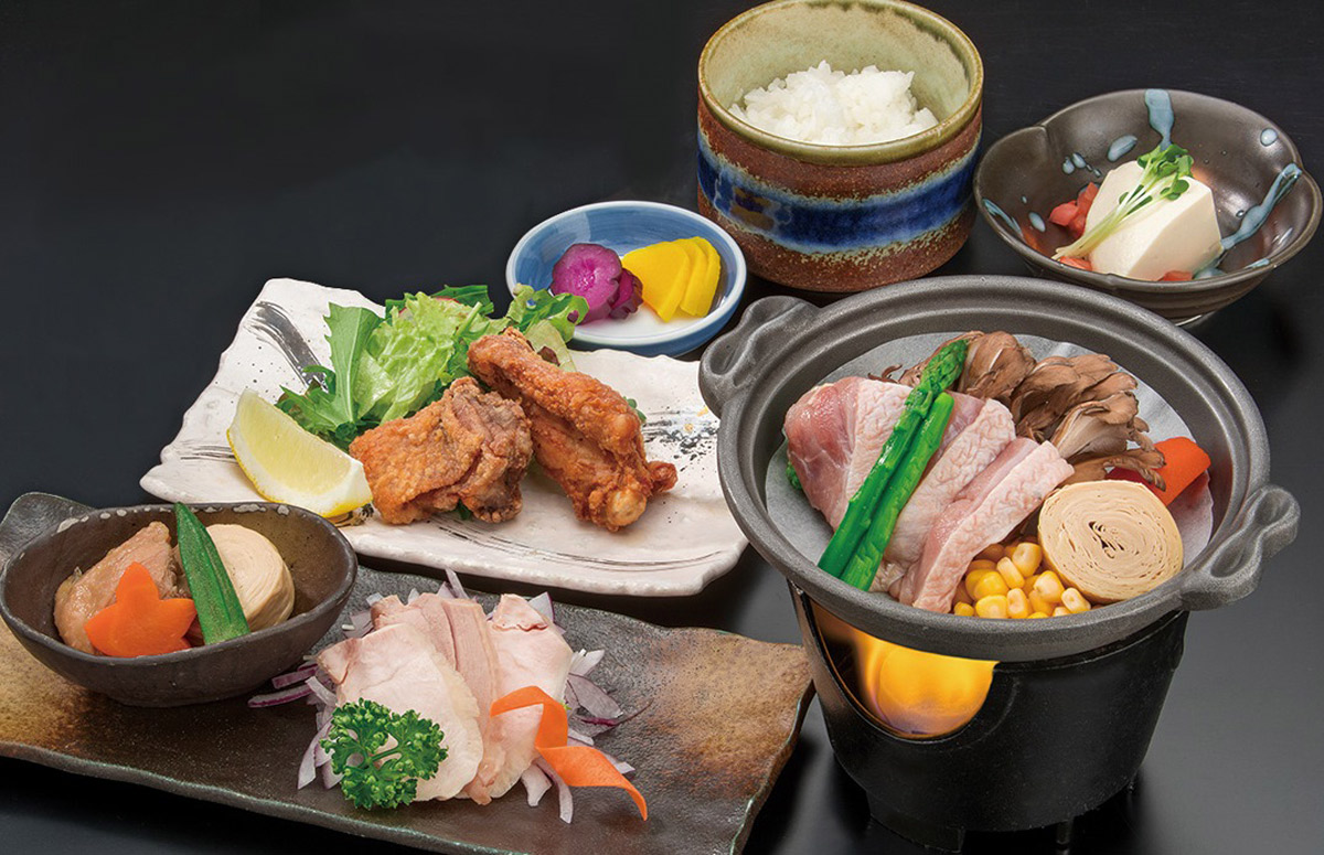 こちらの「袋田温泉関所の湯」は温泉だけでなく、レストランや大広間で味わえる地元産の食材を使った郷土料理も評判なんです。写真は奥久慈名物のしゃも料理4種類に寄せ豆腐などが味わえる盛りだくさんの「奥久慈しゃも御膳」2200円。弾力のあるしゃもは名物だけあってとっても美味。疲れも癒やされてエネルギーは満タンです!