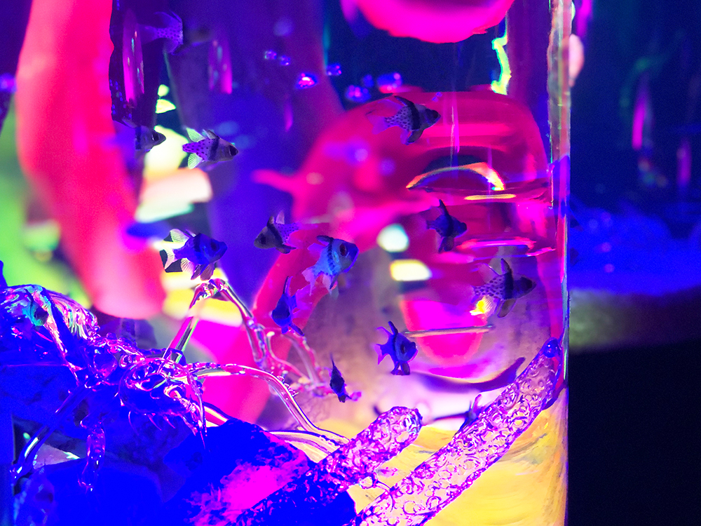このアクアリウムを手がけているのは、数々の賞を総なめにしてきたアクアリウムアーティストのGA☆KYO MIYAZAWA氏。今回は、その奇抜なアイデアと数々のアーティストとのコラボレーションで幻想的な空間が誕生しました。