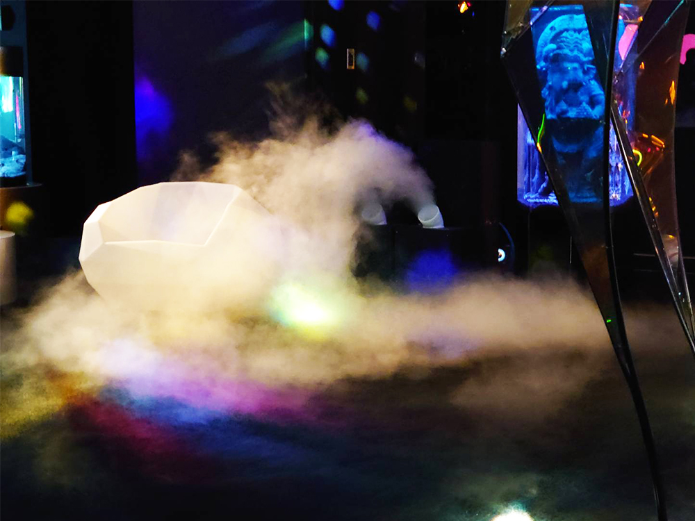 カラフルなライティングがアートに反射する光やミストを使った雲海の演出が、パーティーを盛り上げます!