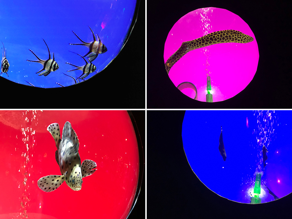 ここでようやく気がついたのが、魚の名前などが掲示されていないこと。これは、固定概念にとらわれず、宇宙旅行を最大限楽しんでもらうための工夫のひとつなんです。