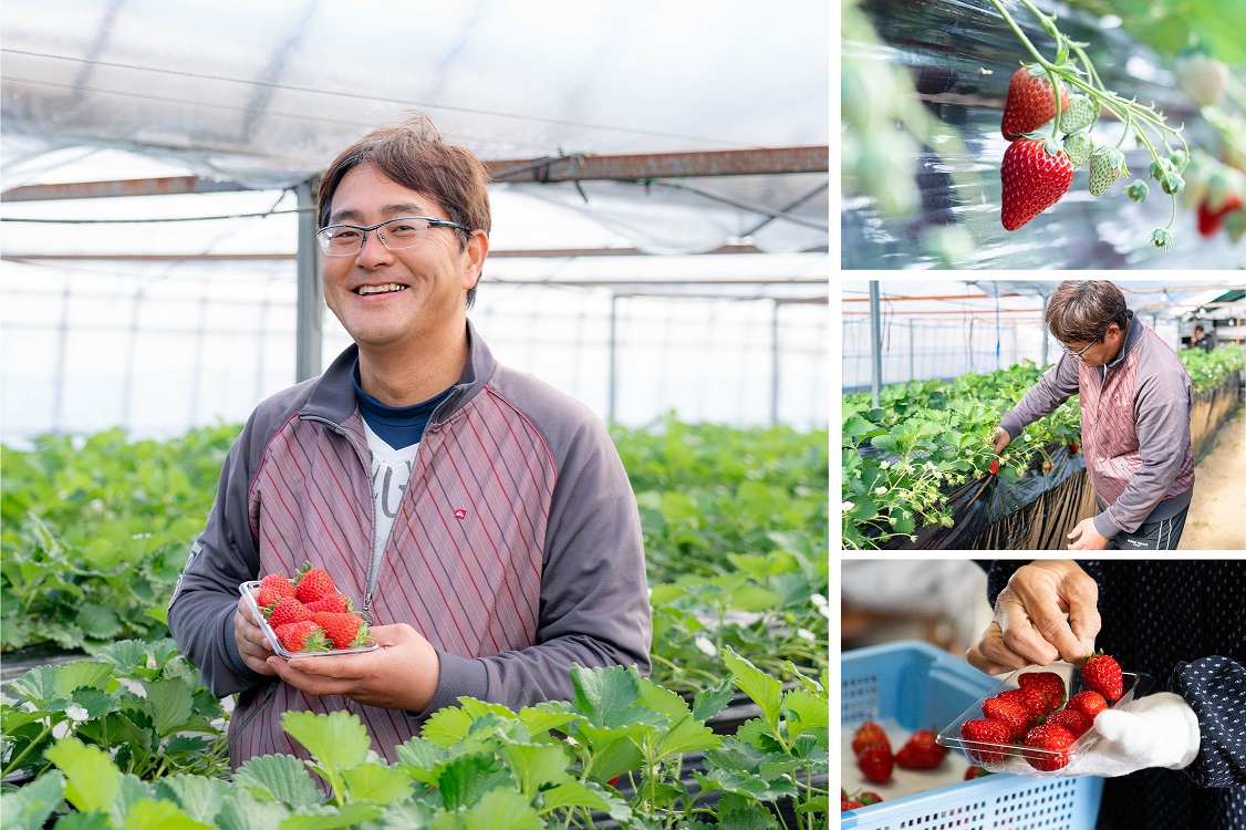 いちごの流通と目利きのプロ『いちごマイスター』こと、いちご縁の志波邦彦さんが毎朝選んでお店に届けてくれるいちごは、市場を通さず直送されるので鮮度抜群。恵比寿楽園テーブルに届けられるおいしいいちごは、これから紹介する3つの契約農家さん自慢のいちごです。