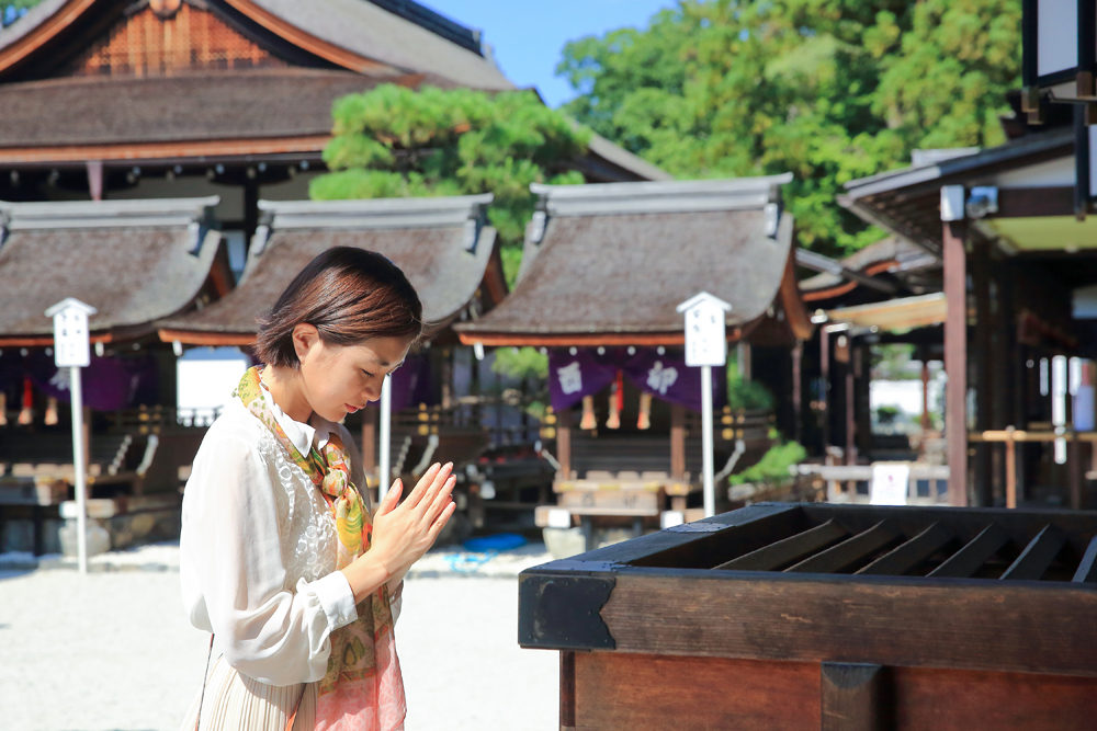 美麗の神・玉依姫命(たまよりひめのみこと)を祀る河合神社では、人気の美人祈願をぜひ。