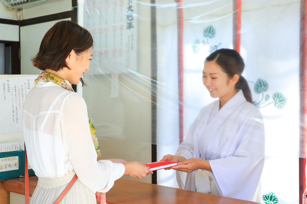 お参りしたら、授与所で御朱印をいただきます。美しい墨書を目の前で直書きしていただくのは、嬉しいものです。