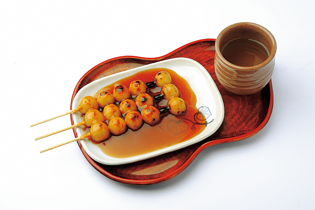 下賀茂神社の門前おやつといえば真っ先に名のあがる、加茂みたらし茶屋。名物は、下鴨神社の境内を流れる御手洗川の気泡をイメージした、みたらし団子3本450円。甘さ控えめの黒糖の蜜がかかり、何とも上品な味わいです。御手洗社の御朱印で押される団子の印と同じビジュアルなので、ぜひ見比べてみて。持ち帰り5本650円もあります。