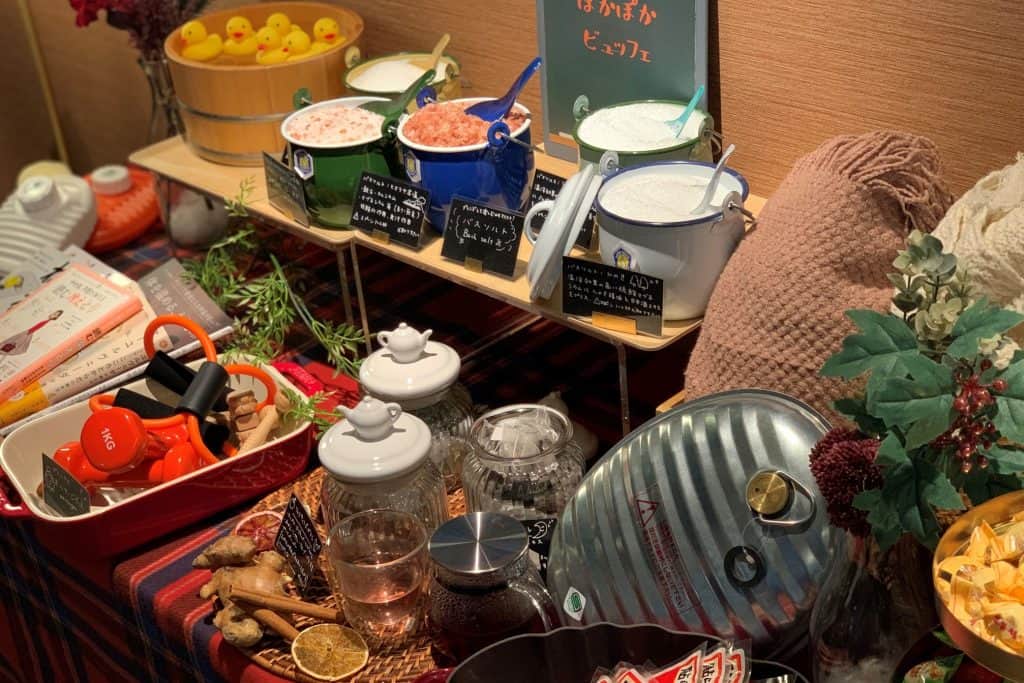 「ぽかぽかお泊まりカフェプラン」の専用フロアには、「温め」をテーマにしたグッズを集めた、「ぽかぽかビュッフェ」が登場。