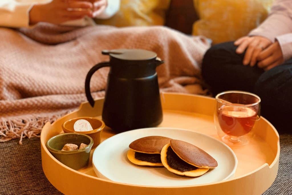 できたてのコーヒーの香りが、よりカフェ気分を盛り上げます。お部屋には、地元の老舗和菓子店「千成もなか」の和スイーツをご用意。あんこの優しい甘さは、コーヒーともハーブティーとも相性ばっちりです。