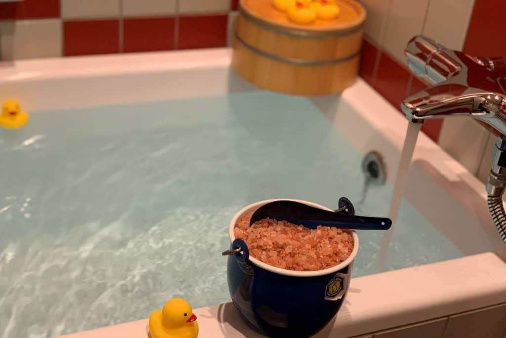 22時 「ぽかぽかビュッフェ」からお気に入りのバスソルトを選んでバスタイム