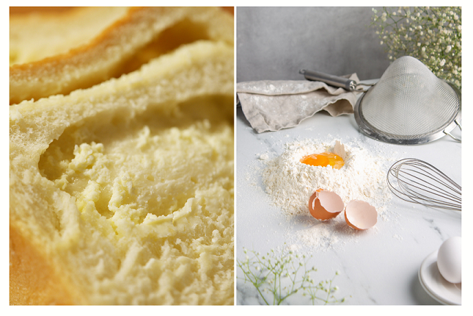 低温長時間発酵や生地に水分を多く含ませることで、小麦の甘みと香りを最大限に引き出し、もっちりしっとりの食パンに。ポイントは、パンの焼成の工程で入れる“蒸し焼き”。このひと手間を加えることで、今までにない食感が味わいに。