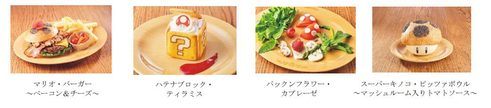 「キノピオ・カフェ」では、マリオの世界にちなんだ遊び心いっぱいのメニューがずらり。どれもがおいしそうで、食べると元気とパワーが出そうですね!