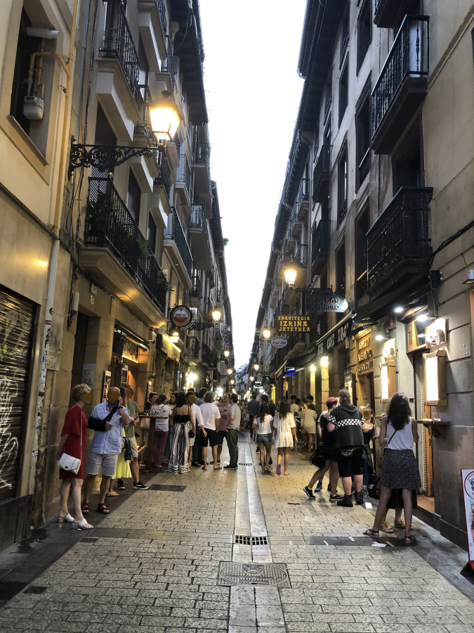 この街には数多くのミシュラン星付きレストラン、それから狭い通りの両側にびっしりと立ち並ぶようにバルがあり、絶えず人々で賑わっています。昼食が14時、夕食が21時からが普通というスペインなので、夜も遅くまで人々の楽しい声が聞こえます。