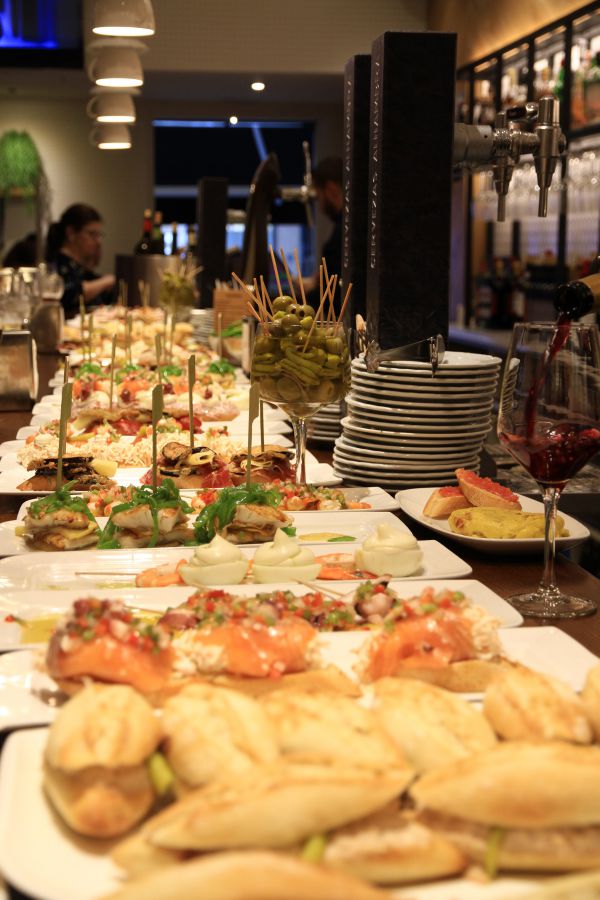 バスク発祥で人気なのが「ピンチョス」と呼ばれる一口サイズの料理。バルと呼ばれるスペインの居酒屋では、ピンチョスの食べ歩きが本当に楽しいんです!それぞれのバルには得意のピンチョスがあるので、シーフードが有名なバルで食べて、次はハムが美味しいバルに向かう。地元の人々に交じってそんな夜の楽しみ方も◎。