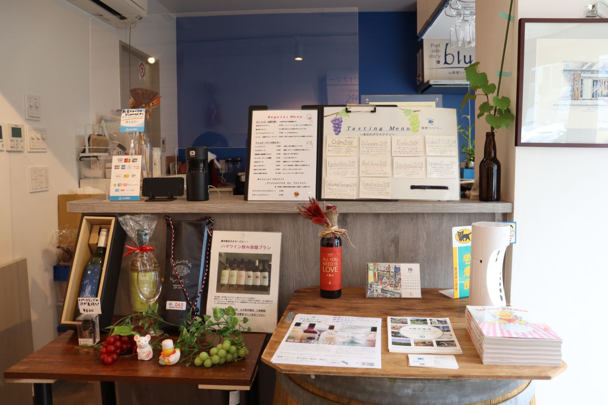 横濱ワイナリーの醸造所に併設されたテイスティングバー「.blue(ポイントブルー)」では、試飲のほか、ハマワインに合うおつまみが楽しめます。