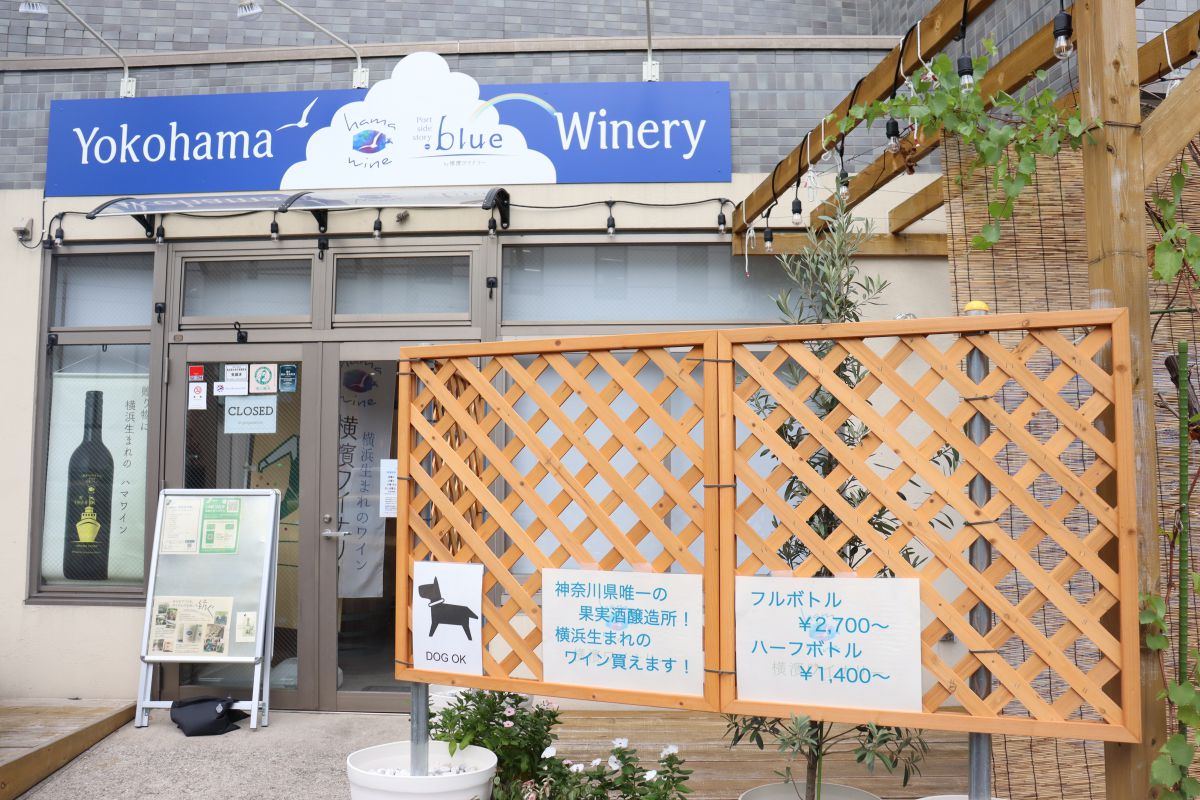 2017年、山下公園のすぐ近くにオープンした横濱ワイナリー。横浜らしいブルーの看板が目印で、ビルの1階に入った、都市型ワイナリーです。規模としては、日本最小ですが、店舗の奥には大きなタンクが4つあり、横濱ワイナリーオリジナルブランド「ハマワイン」が醸造・販売されています。