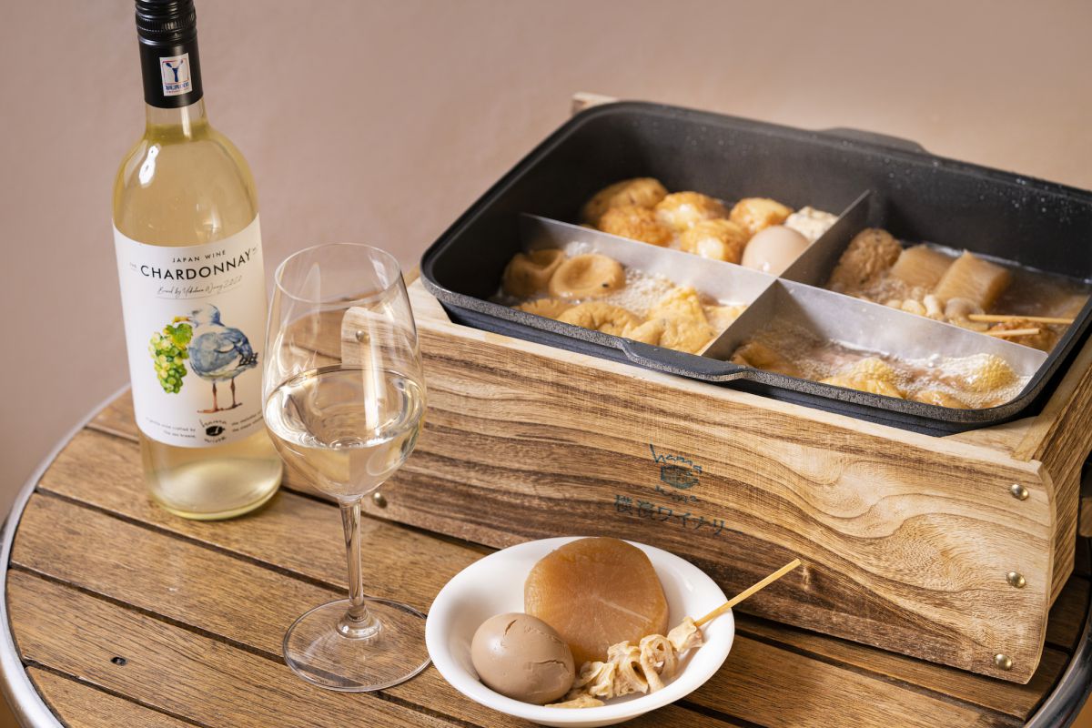 テイスティングバーでは、こだわりのワインが一杯300円(税別)からテイスティングができるほか、3月中旬までは、冬限定メニューとして、おでん(100円〜)も用意されています。横浜産の「大根」や、横浜名物シュウマイと小松菜を詰めた「ハマ巾着」など、具材はその日のお楽しみ!どれもワインにぴったりでついつい飲みすぎちゃいそう。