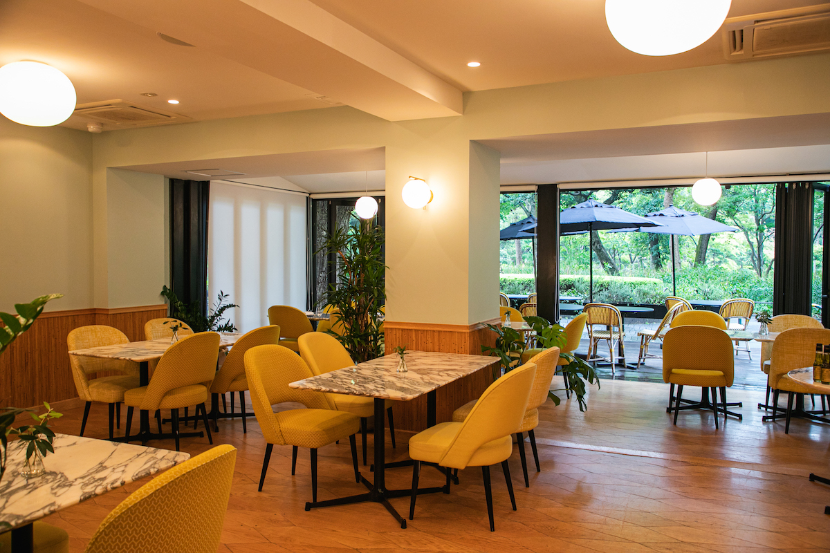 店内は黄色を基調としたクラシカルで上品な雰囲気。窓の奥に日比谷公園の美しい緑が広がります。ちなみにこちらのお店、レストランとしてだけでなく、ウェディング会場としても人気があるんです。
