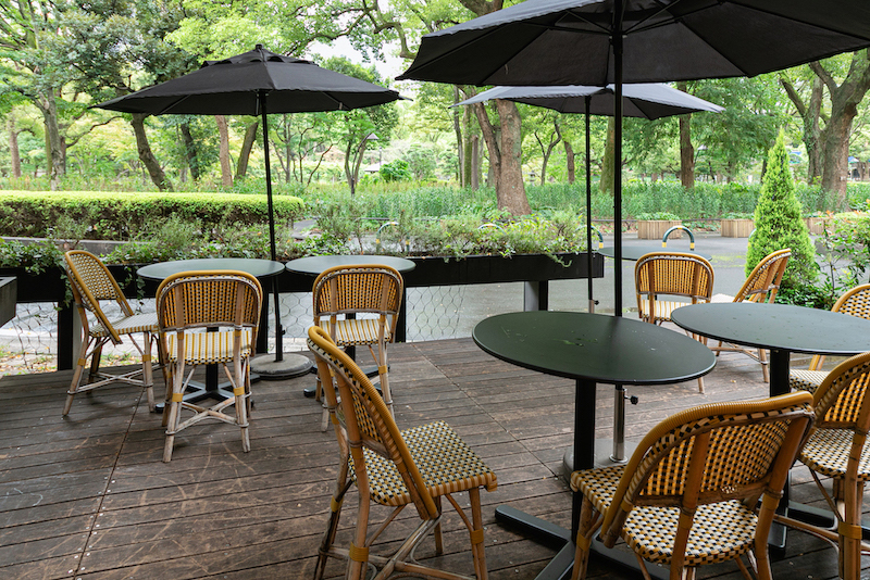 お天気のいい日は、テラス席もおすすめ! 都心にいながらにして、自然を感じながらくつろぎの時間が楽しめます。アフタヌーンティーもテラス席でいただくことができます。