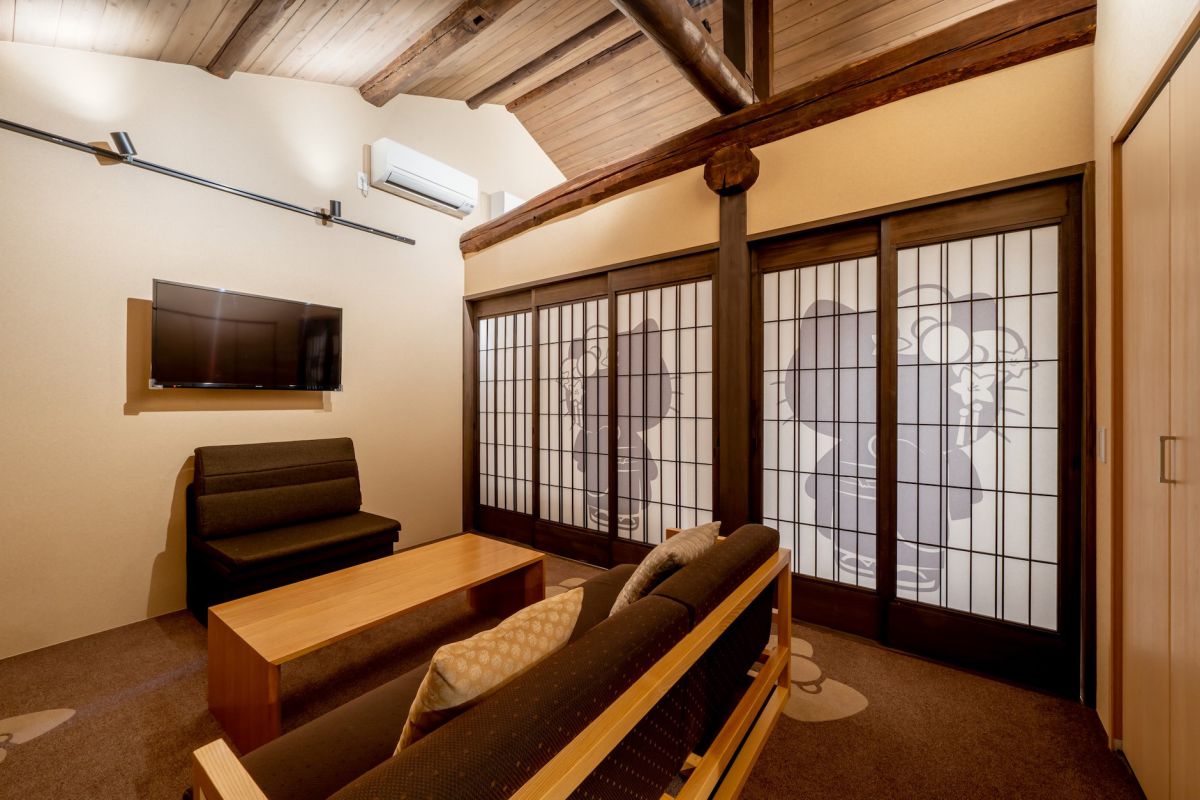障子を閉めてみても、キティちゃんのシルエットがくっきり。テレビはNetflixも観られるので、ゆっくりと自分の時間を楽しめます。