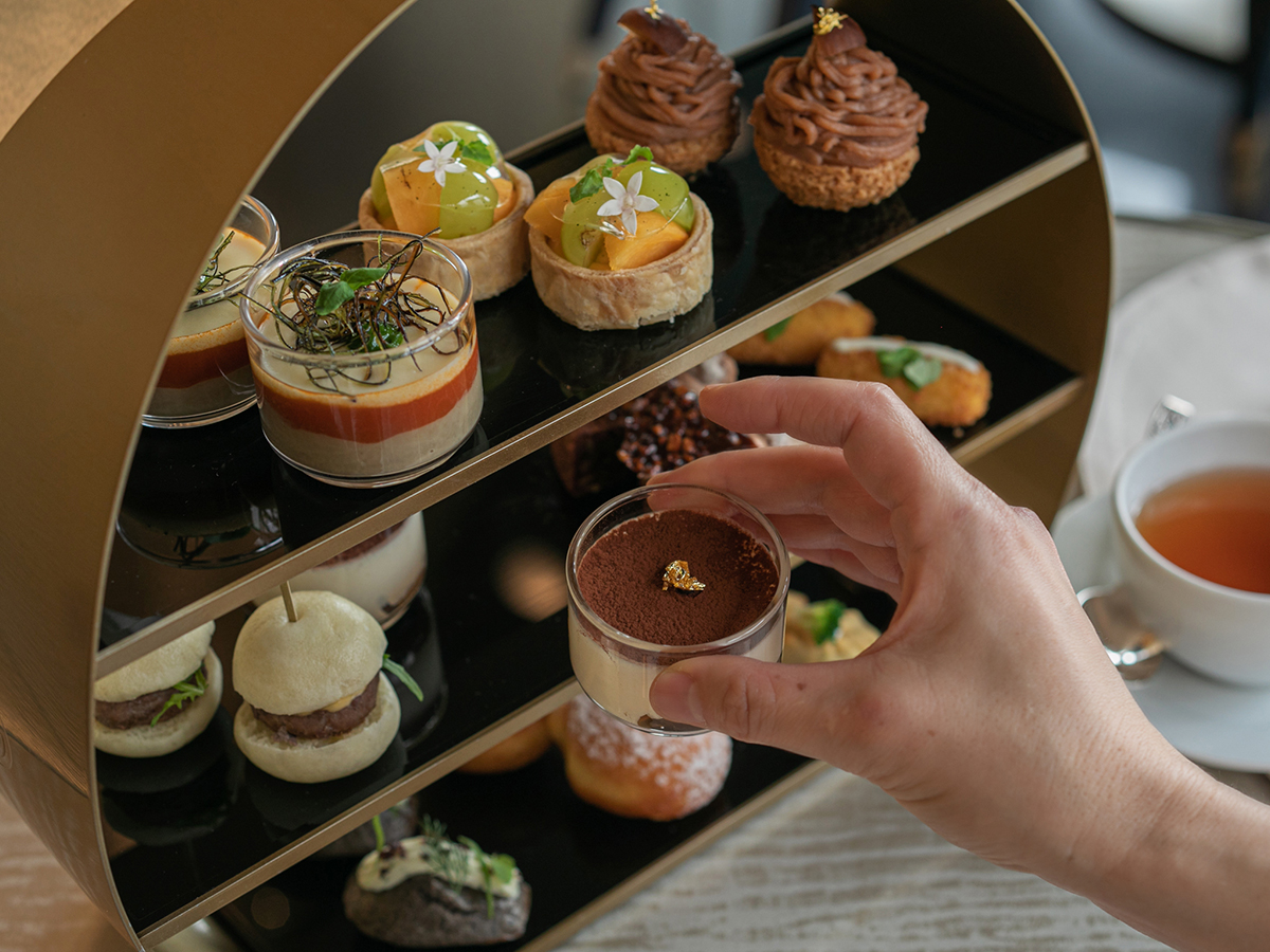 アフタヌーンティーにも、もちろん彼の精神が詰まっています。シックなゴールドのスタンドに並ぶセイボリーとデザートは、まるでアートのような美しさ。そしてイタリアの伝統レシピに、旬の和食材が使われた繊細な味。目でも舌でも、存分にハイクオリティなアフタヌーンティーを楽しむことができます。
