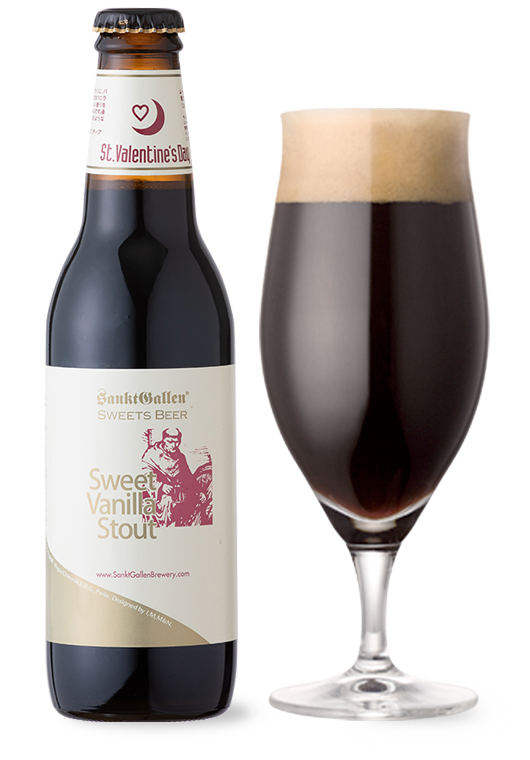 エスプレッソのように濃厚な黒ビールにバニラの香りを溶け込ませた「スイートバニラスタウト バレンタインラベル」460円(税別)