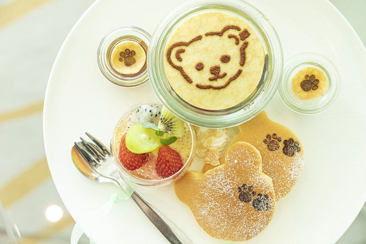 翌日も客室で、テディベアをかたどったパンケーキが盛り付けられた朝食プレートが楽しめます。地上約180mからの東京の景色を眺めながらテディベアと一緒に優雅な朝食はいかが。こちらも7~10時の間で好きな時間が選べます。