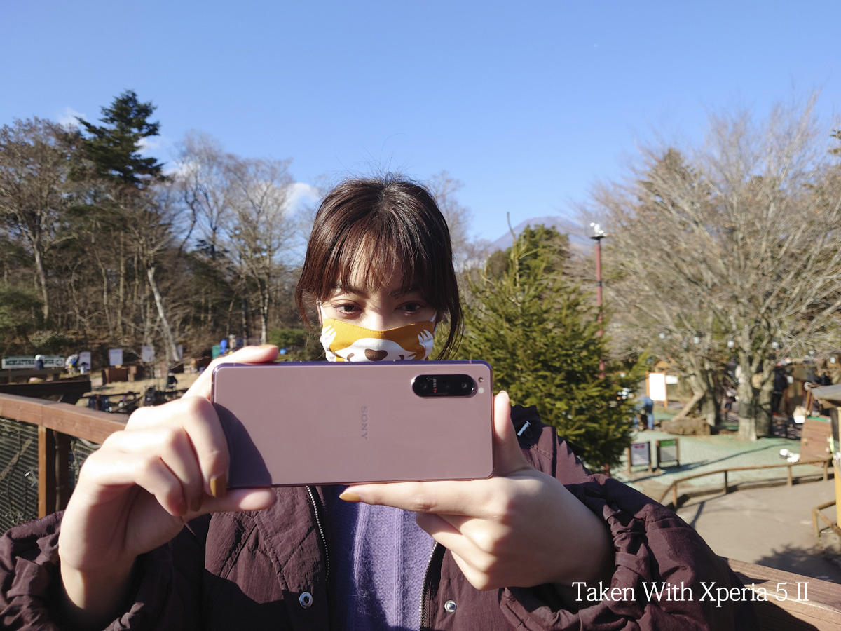 「こんなにたくさん動物と触れ合える場所って意外と少ないですよね。今日は1日自然と動物に触れて大満足です!また違う季節に来たら見える景色も変わって楽しいんだろうな」と清水さん。「富士サファリパーク」の魅力にすっかりハマった様子。富士山のふもとで、さまざまな種類の珍しい動物との出会いを満喫できました。みなさんも旅の思い出を鮮明に残してくれるXperia 5 IIと一緒に、他では体験できない動物との触れ合いを楽しんでくださいね。