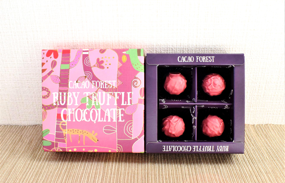 甘酸っぱくスッキリとした味わい「カカオの森 ルビートリュフチョコレート」378円