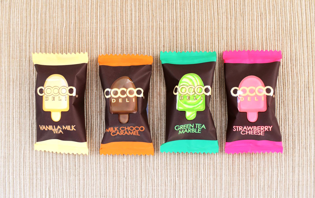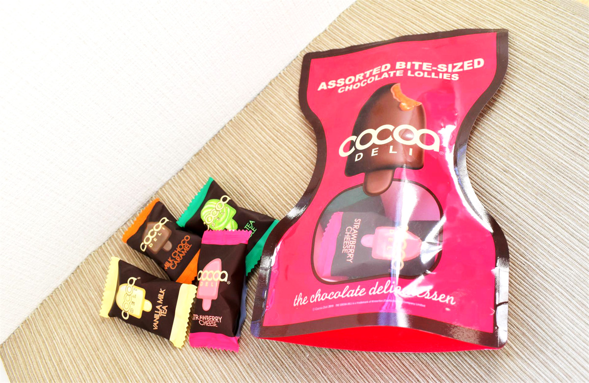 お次は、アイスキャンディーの形をしたポップなチョコレート「ココアデリ スタンドパック」。こちらはイギリス発のブランドで、色とりどりな一口サイズのフレーバーチョコレートが1袋に7個入っています。