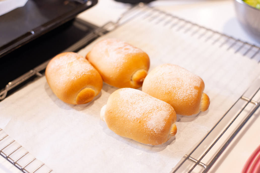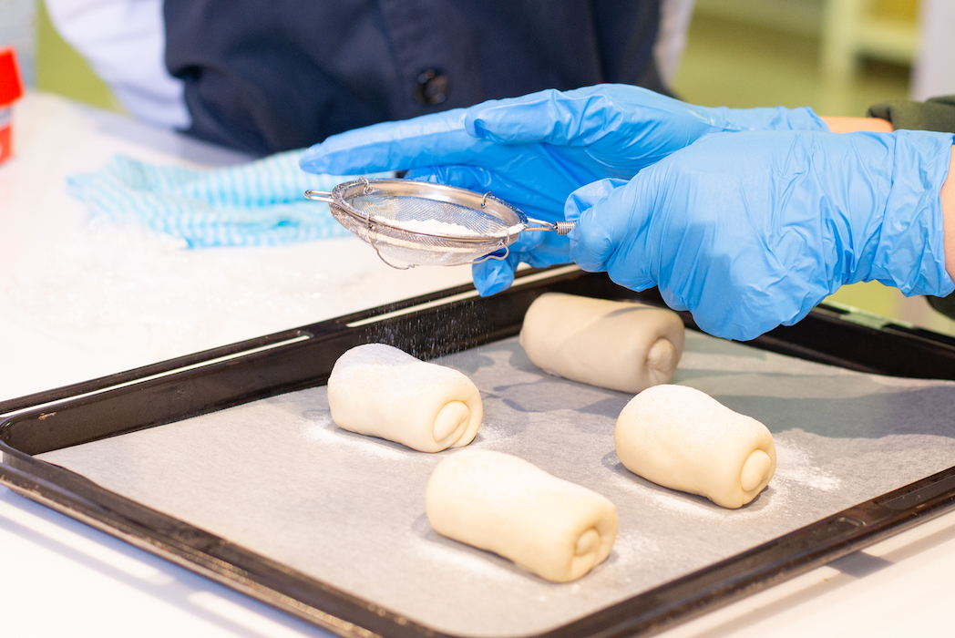 白井先生「パン生地の表面に強力粉をふるって焼くことで、焼き色が付きにくくなります。また見た目も本格的で華やかに仕上がりますね。」