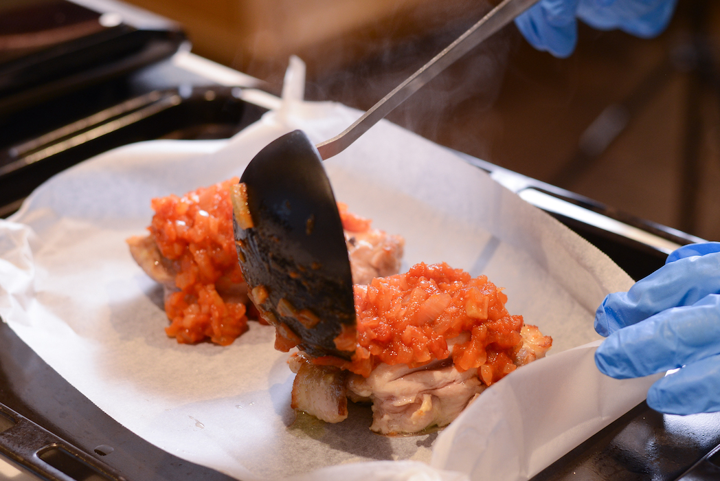 白井先生「皮はじっくりと火を通すことで、パリパリの食感が得られます。あまりいじらずに加熱することが大事です。」