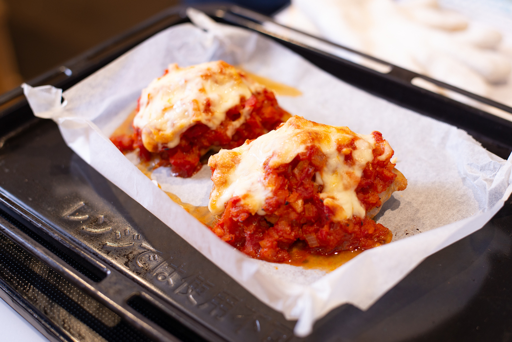 なお本メニューのもう一つの魅力が、“時短”が叶う点。チキンとパンを同時に焼き上げるため、スピーディに2つのメニューを仕上げることができます。つまり、忙しい日やちょっと手抜きしたい日も、強い味方になってくれるということ。外食の機会が大きく減り、日々の自炊が負担になりがちな今こそ、マスターしたいのが「とろ~りチーズのチキン・トマトソース/ロールパン」なのです。