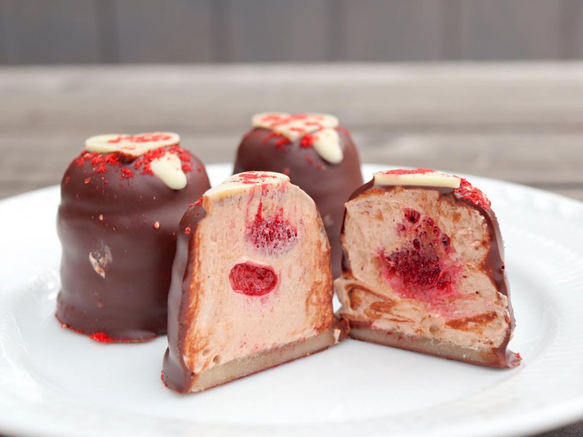 ホワイトデー限定クリームキスの中には、ほろ苦いココア味のメレンゲクリームと甘酸っぱいラズベリーのジュレが。外側は、ペルー産カカオ61%のビターな味わいのチョコレートでコーティングされていて、一口食べるとパリッとした食感の後、とろけるようなメレンゲの甘さが口いっぱいに広がります。
