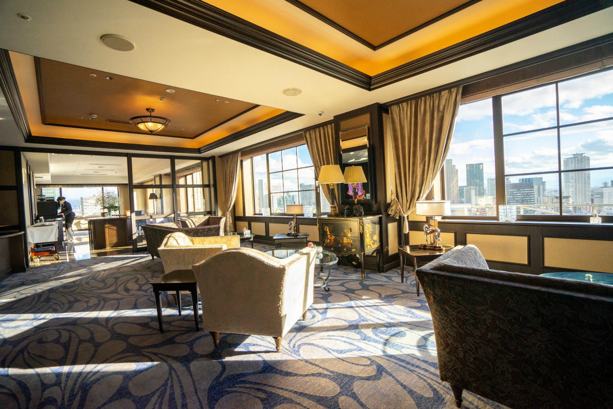 アメリカのホテルチェーン「ウェスティンホテル&リゾート」の中でも、日本第一号として1993年に開業した「ウェスティンホテル大阪」。地上30Fからなるビルの中でも、とくに26~30Fの高層階はエグゼクティブクラブフロアとして贅沢な設えです。