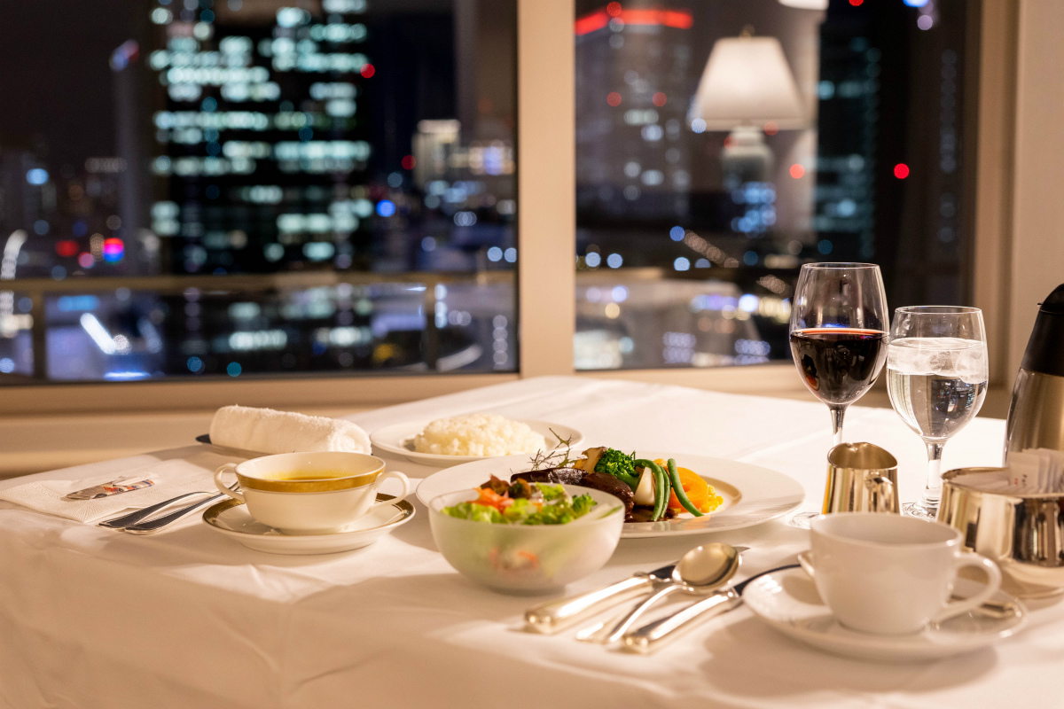 26F以上の高層階にアサインされるので、もちろんお部屋でも夜景が楽しめます。せっかくなのでルームサービスをとって、贅沢な景色を眺めながらディナーをしてみてはいかがでしょう。