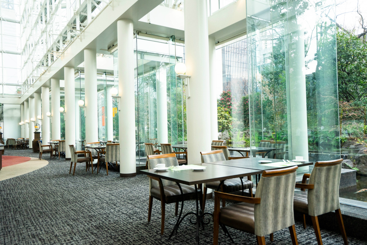 “雲の上の寝心地”と称されるウェスティンオリジナル「ヘブンリーベッド®」でぐっすり眠ったあとは、お楽しみの朝食タイム。1Fにあるレストラン「アマデウス」で食べられます。3階分吹き抜けのアトリウム空間で、中庭はまるで森のよう。