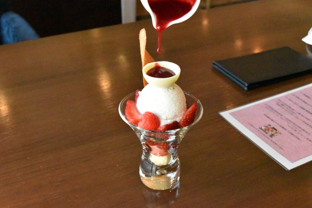 私の一番のおすすめは「ストロベリーパフェ」。温かいラズベリーソースを注ぐと、ホワイトチョコレートがとろり。ば、映えすぎる~!バニラアイスは、「横濱馬車道アイス」を使用していて、とにかく相性抜群です♡パフェグラスの頭から底までぎっしりと詰まったいちごがとっても贅沢で、食べても食べてもいちごだらけなパフェなんて、夢のようでした…!
