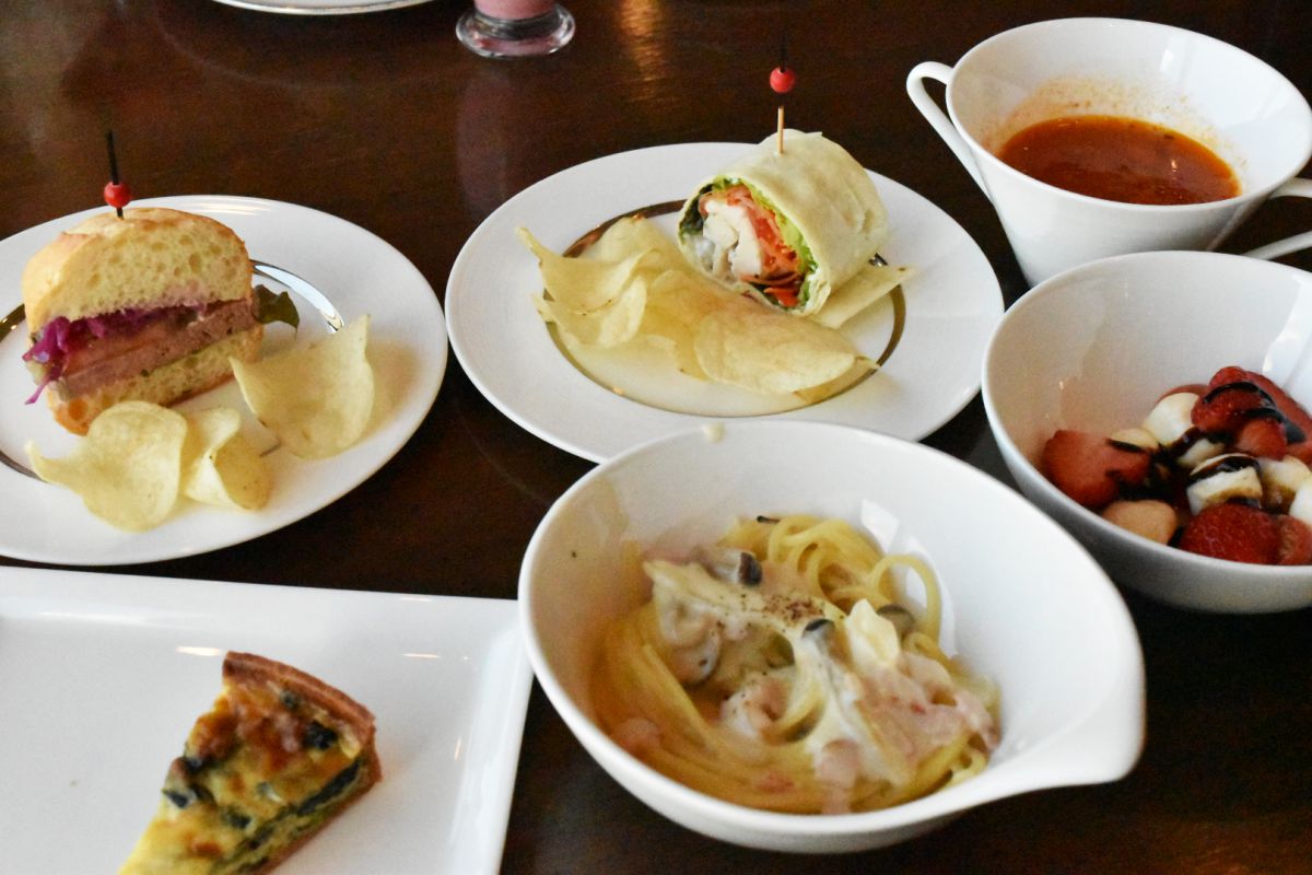 JR横浜駅直通の「横浜ベイシェラトン ホテル&タワーズ」。今回のブッフェは最上階(28階)のスカイラウンジで行われています。最上階ということもあり敷居が高そう…と緊張しながら入店すると、開放感のあるラグジュアリーな空間がお出迎えしてくれます。