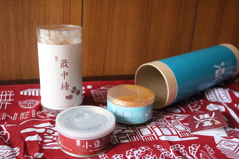 パッケージもとてもかわいくて、さらにオリジナルの手ぬぐいで包んだ状態で届きます。紙管のフタをあけたら、小豆のあんこ、ナッツククリーム、最中種がきゅっと詰まっていて、取り出すのも楽しいし、紙袋もついてくるので、プレゼントにしても喜ばれそう!