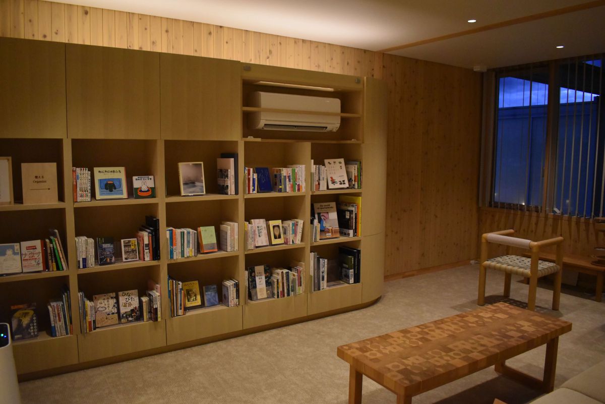 温泉棟の手前には、ライブラリも。共用棟のライブラリと合わせて約2000冊もの本が揃えられています。