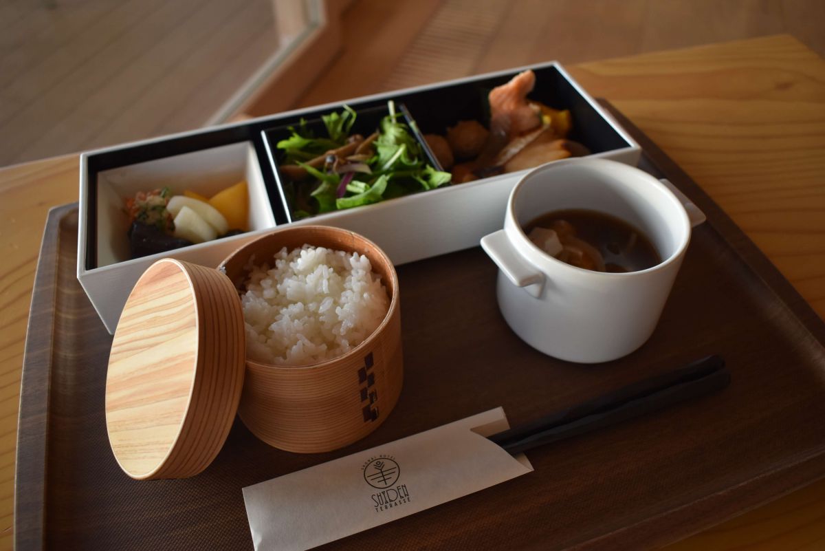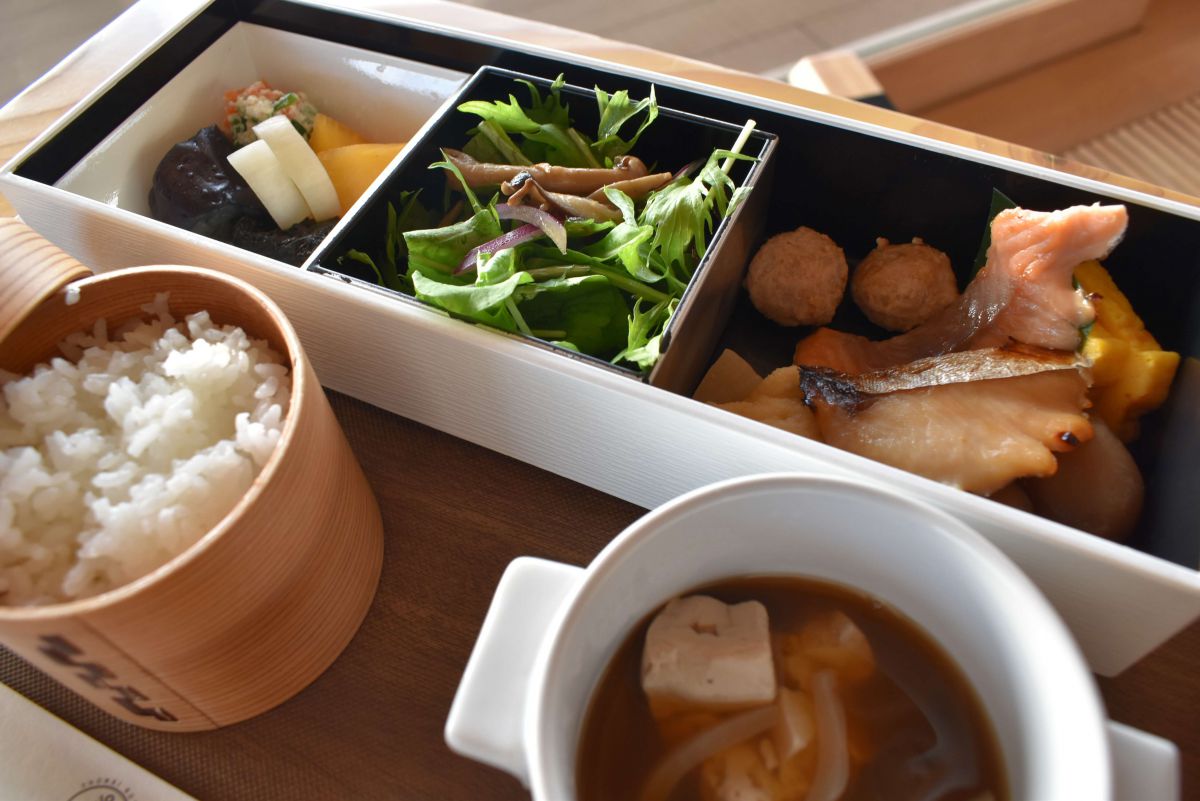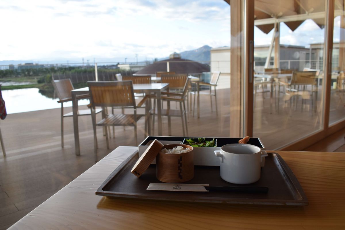 そんな外の景色を見ながらいただく朝食は「和風弁当と庄内の季節の汁物」。