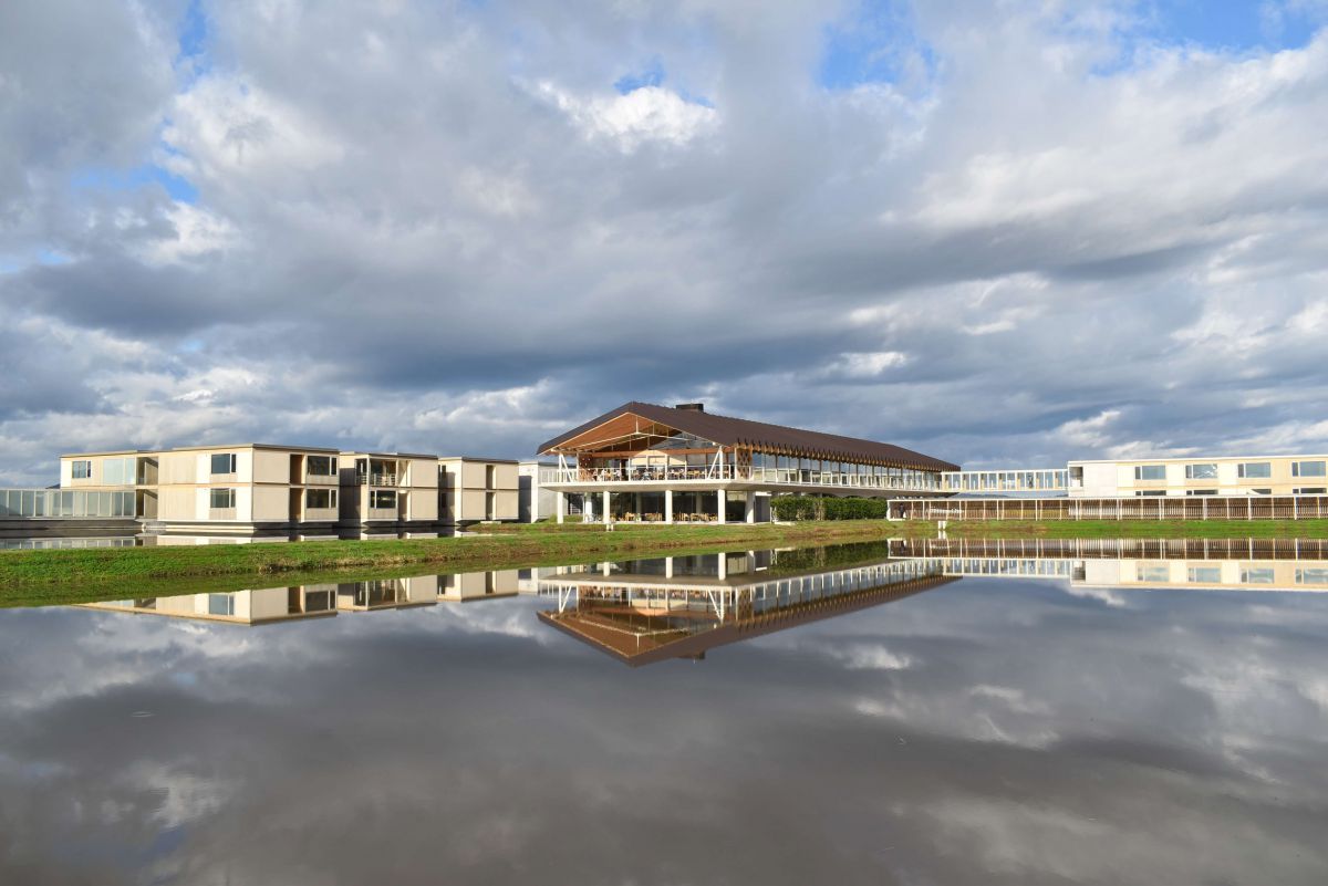 私の訪れた時期は稲刈りのちょうど後だったので、このようにリフレクションが綺麗な水田の景色が広がっているのですが、夏~秋にかけてはホテル周りの水田に青々とした稲が植わっているんです。