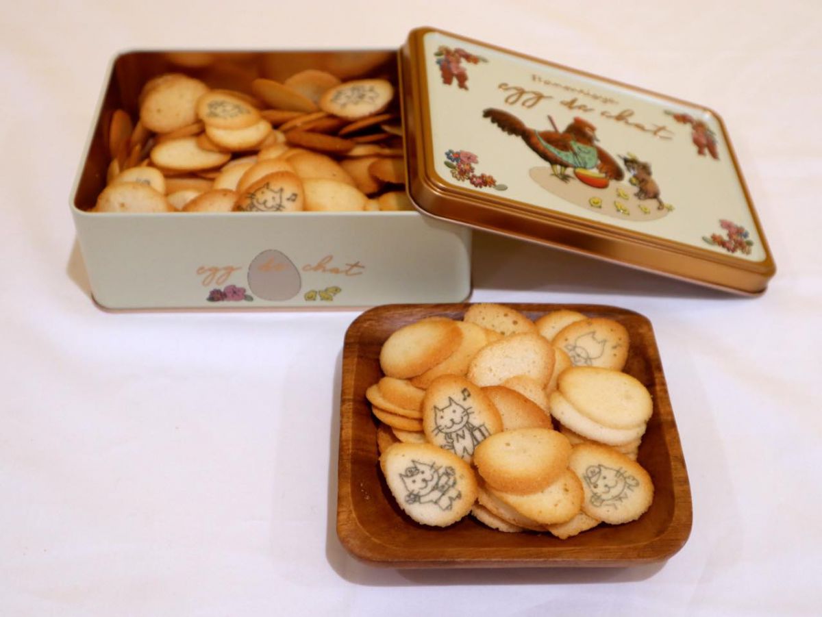 栃木県のエッグファーム「卵明舎」のスイーツブランド「オーヴォ」の磨宝卵(まほうらん)GOLDを使用した薄焼きラングドシャ。ちいさな卵形の薄焼きクッキーは、卵の優しい甘みと薄焼きのサクサクとした軽い食感が味わえます。キャンペーンに合わせてクッキーには、JR日暮里駅の人気キャラクター「にゃっぽり」をデザイン。子ねこが描かれた缶にも注目です。