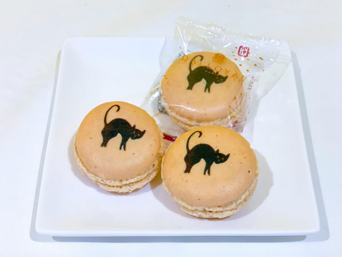 ダロワイヨの定番人気のマカロンヴァニーユに、今にも飛び出してきそうな黒猫のシルエットをプリントしたマカロン。外側はカリッ、中は柔らかくとろけるような食感。香り豊かなマダガスカル産ヴァニラの風味が上品です。