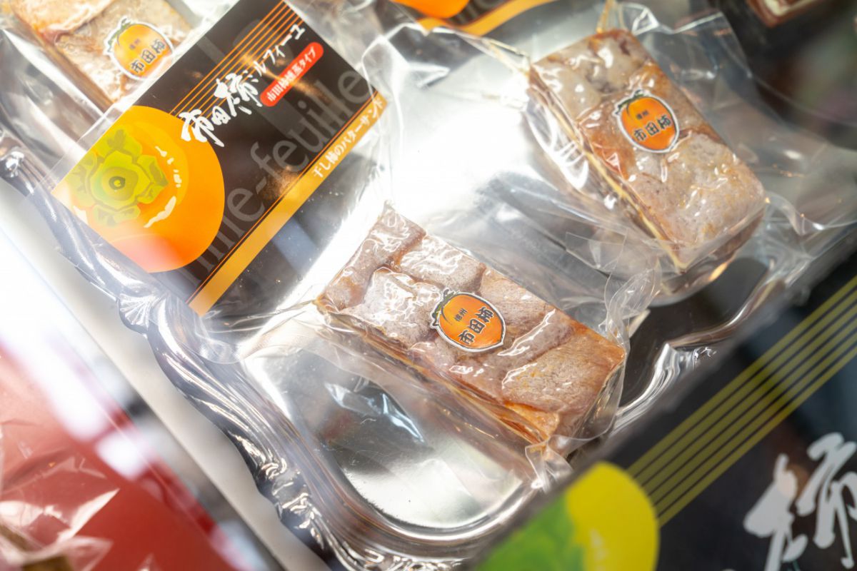 出会ってしまった〜!と思わず叫んでしまった「市田柿のミルフィーユ」、見た目は干したサーモンのようですがこちら…なんとですね…干し柿にバターを挟んでミルフィーユに仕上げてしまったという魅惑のスイーツなんです。