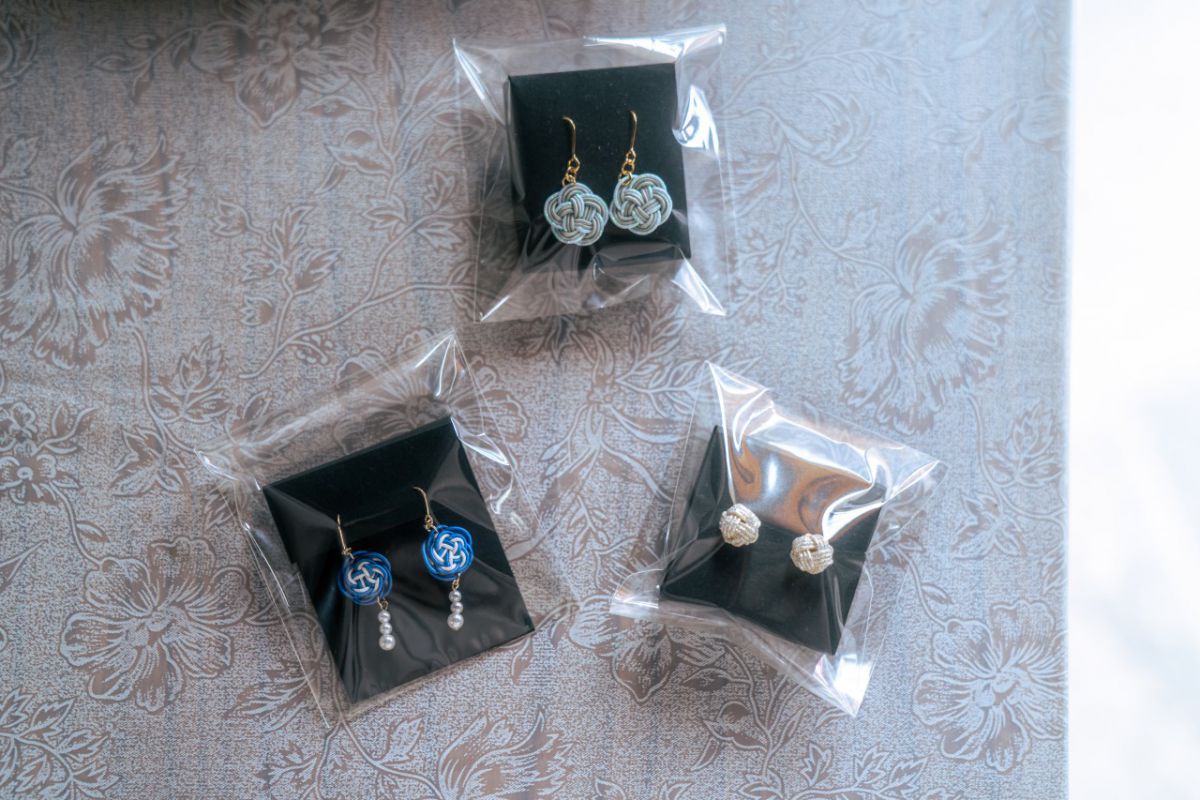 最近は水引仕立ての「あまびえ」のガチャや、手作りできる制作キットなども人気なのだそう。疫病退散を願いながらお家で楽しめる手作業時間、集中と出来上がりの達成感はストレス解消にもなりそう。店頭には水引のピアスなどのアクセサリーも。