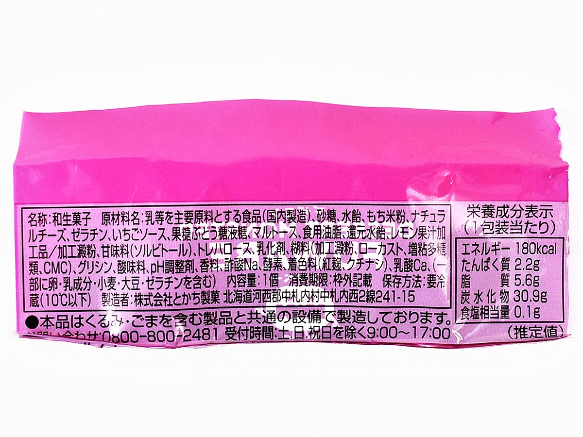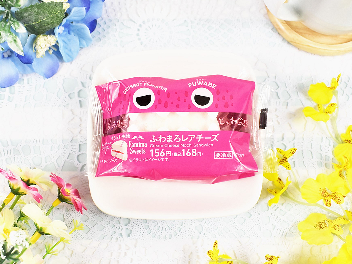 マゼンタ色のカラーリングが目立つ「ふわまろレアチーズ」のパッケージ。なにやら目と口がデザインされていて、開いた口の隙間からモチモチした白い生地がちらり。パッケージに描かれているのはフワベーという名の“DESSERT MONSTER(デザモン)”で、まるでフワベーがスイーツを頬張るようなデザインが可愛いですよね。