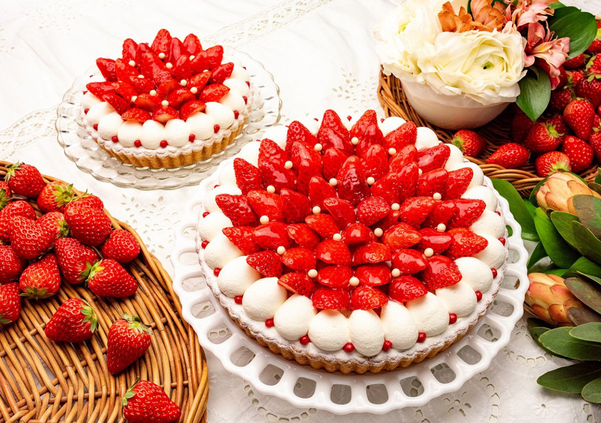 ■キル フェ ボン「イチゴとオレンジムースのタルト」「茨城県産 “旭甘十郎”のタルト」